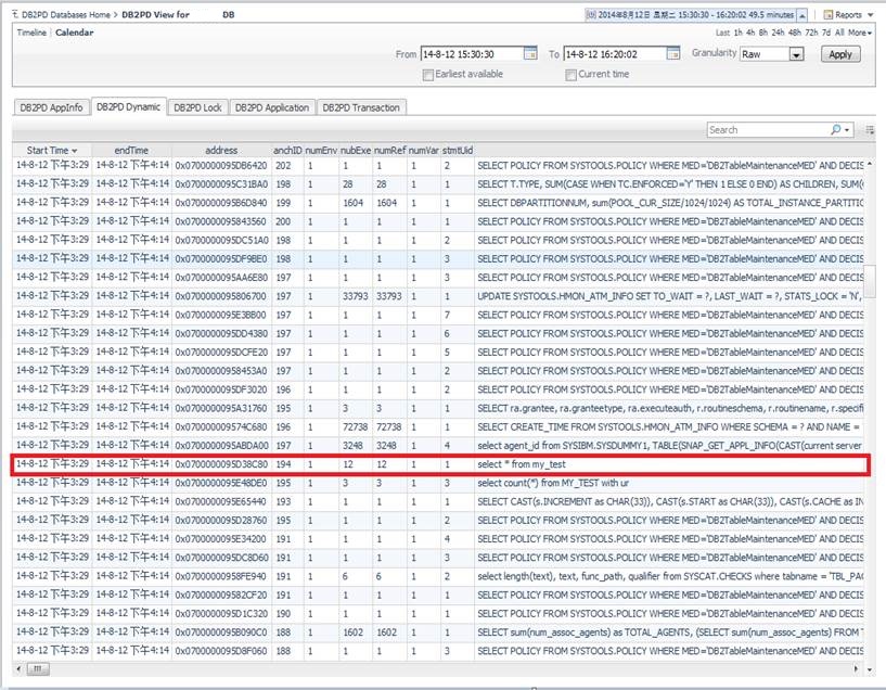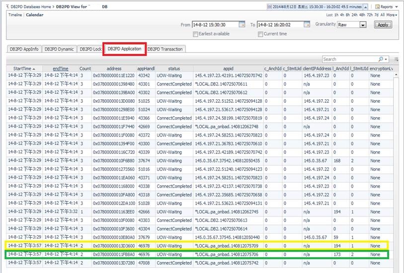 现在我们只知道在15:58分左右有个应用因为锁等待超时而回滚了,那我们怎么通过DB2PD监控模块来分析回滚原因呢?